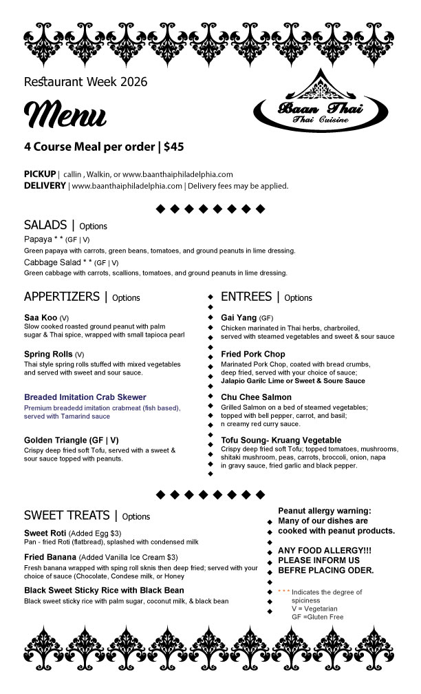 I am Nonathaporn (“Pum”), owner of Baan Thai Thai Cuisine. Originally opened by my godmother, Seangsupan (“Samantha”), Baan Thai has been a part of the Northern Liberties community for over 15 years. My godmother strived to offer a wide range of Thai dishes with an emphasis on authentic flavors; and I plan to continue this practice. Fresh ingredients, love, and passion will always go into every dish! From the regional staples to the street food to modern twists, I want to bring all aspects of Thai cuisine to you! Come enjoy an evening with us; and let us provide you, family, and friends an enjoyable cuisine experience.